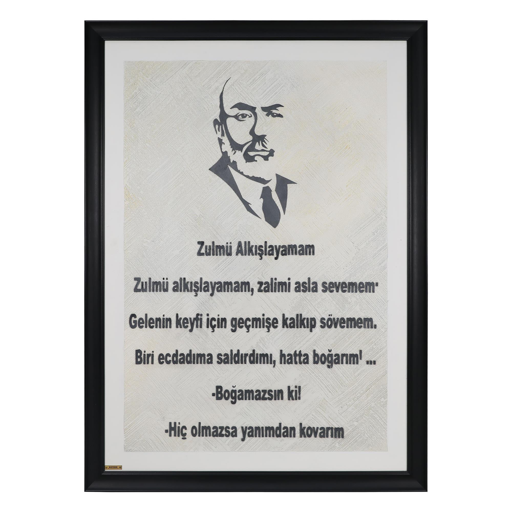 Product Features Number of Pieces: Single Dimension: 108*78 cm Brand: e38 • Mehmet Akif Ersoy Figure was worked on chipboard slide with decorative wall putty. • It is 100% domestic product. • It maintains its color, light and texture quality for many years. • First class materials and workmanship are used. • It is 100% hand workmanship. • It is a special product just for you. There is no other version of this product.