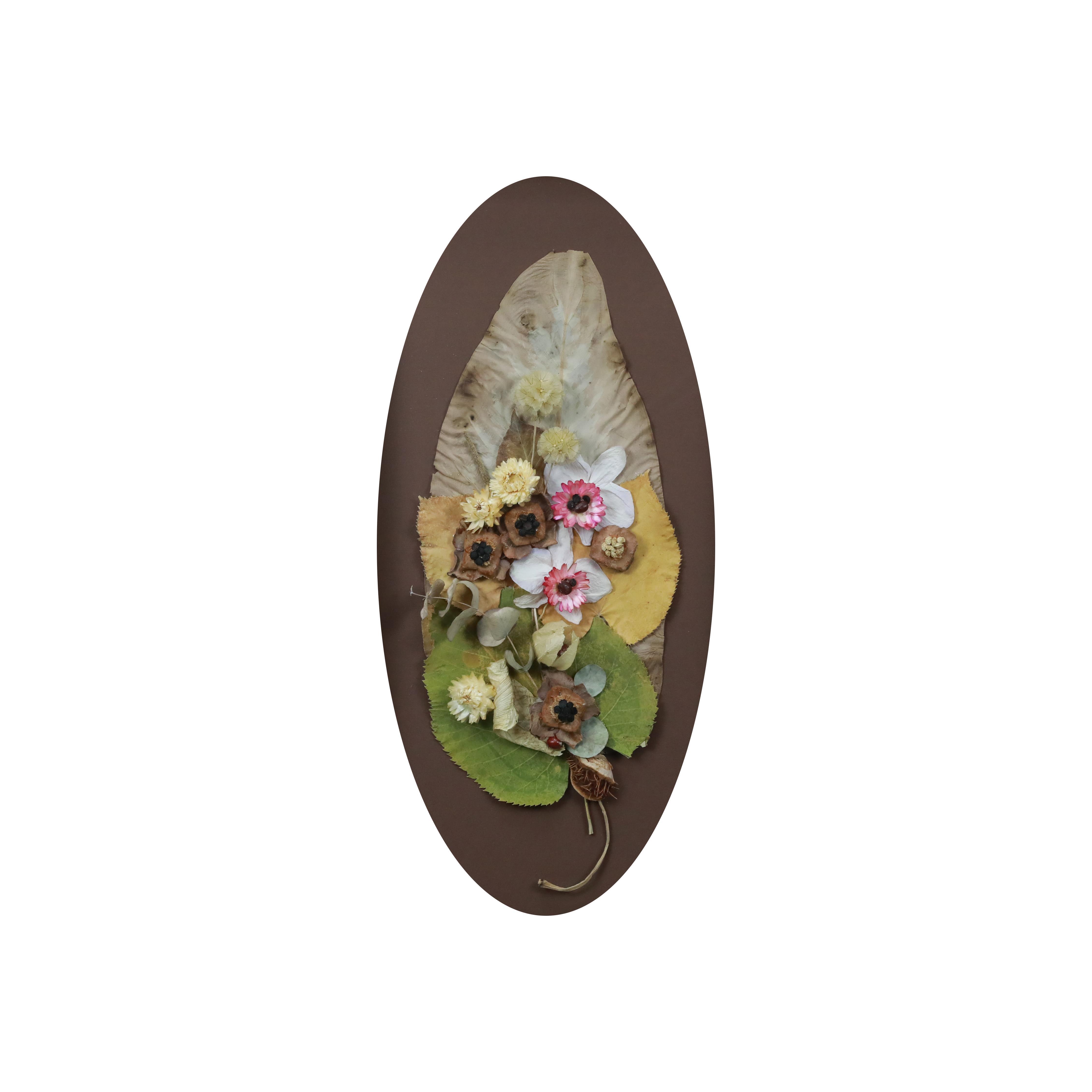 • Various dried flowers and leaves, dry branches, silicone and cardboard are used.