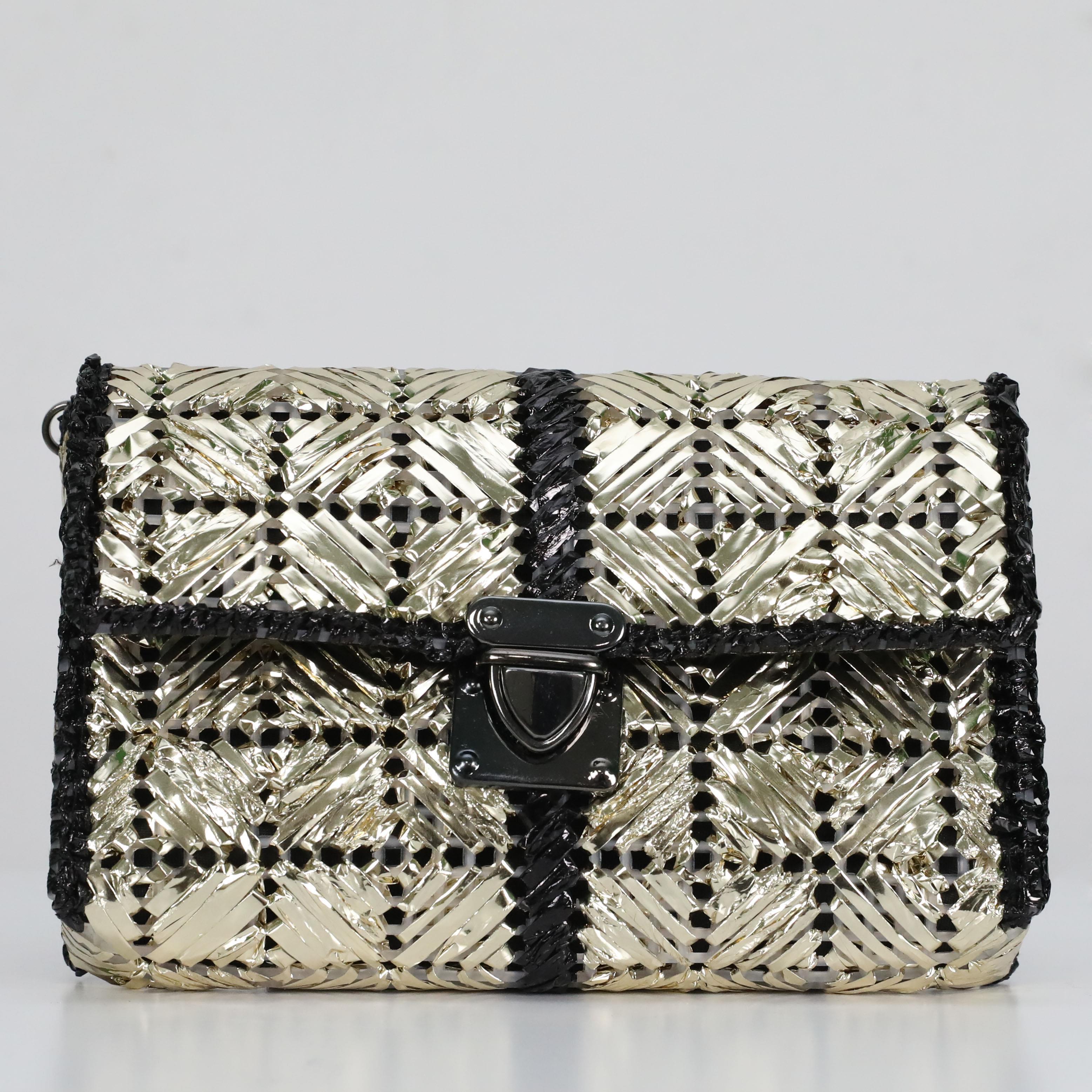 DECORATIVE BAGProduct Features Number of Pieces: SingleSize: Brand: e38 • Embroidered with metallic raffia thread embroidery techniques on canvas, completed with metal accessories. • 100% domestic product. • It maintains its color, light and texture quality for many years. • First class materials and workmanship are used. • It is 100% handcrafted. • It is a special product just for you. There is no other version of this product.
