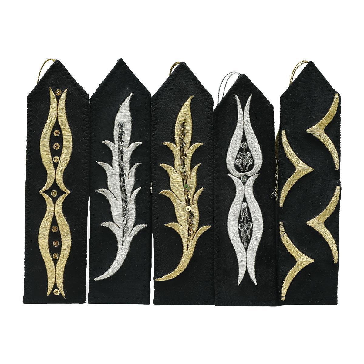• Siyah kadife üzerine, makinede Maraş işi teknikleri kullanılarak, altın sarısı ve gümüş sim sırma ile işlenmiştir.