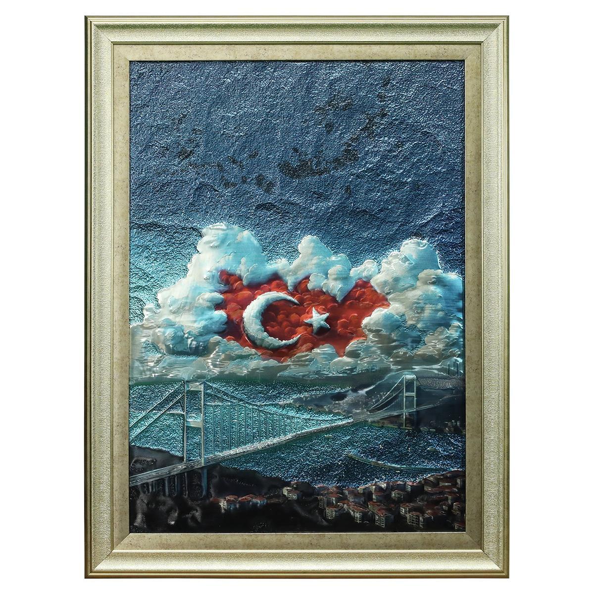 • Alüminyum üzerine baskı,sıcak silikon ve parlak sprey vernik kullanılarak alüminyum baskıya indirme ve İstanbul boğazı ve Türk Bayrağı kabartmalarla boyutlandırma yapılmıştır.