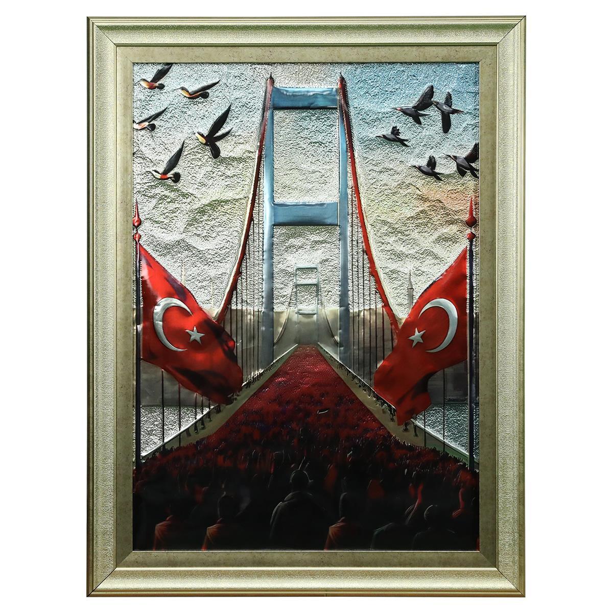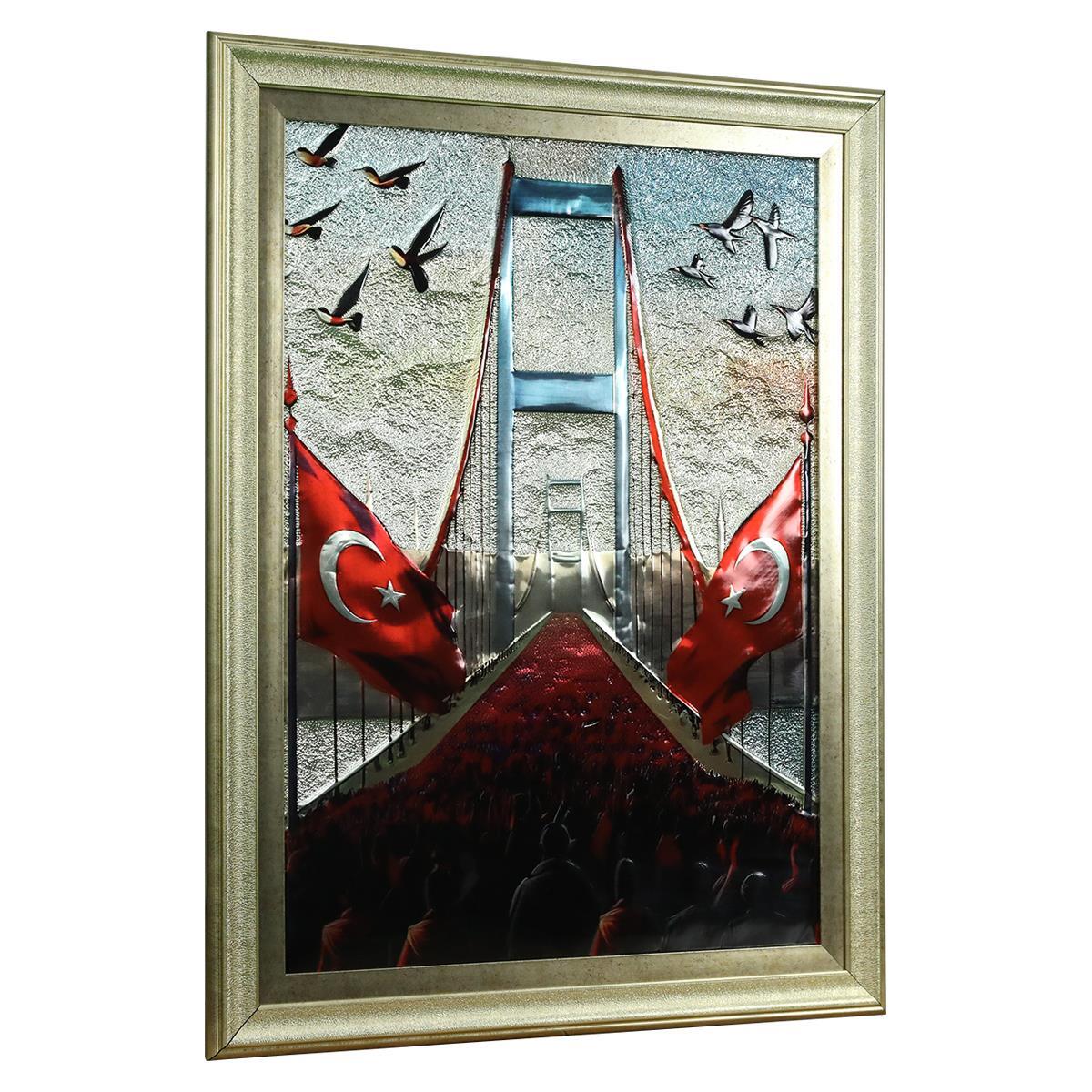 • Alüminyum üzerine baskı,sıcak silikon ve parlak sprey vernik kullanılarak alüminyum baskıya indirme ve Türk Bayrağı ve Boğaz Köprüsü kabartmalarla boyutlandırma yapılmıştır.