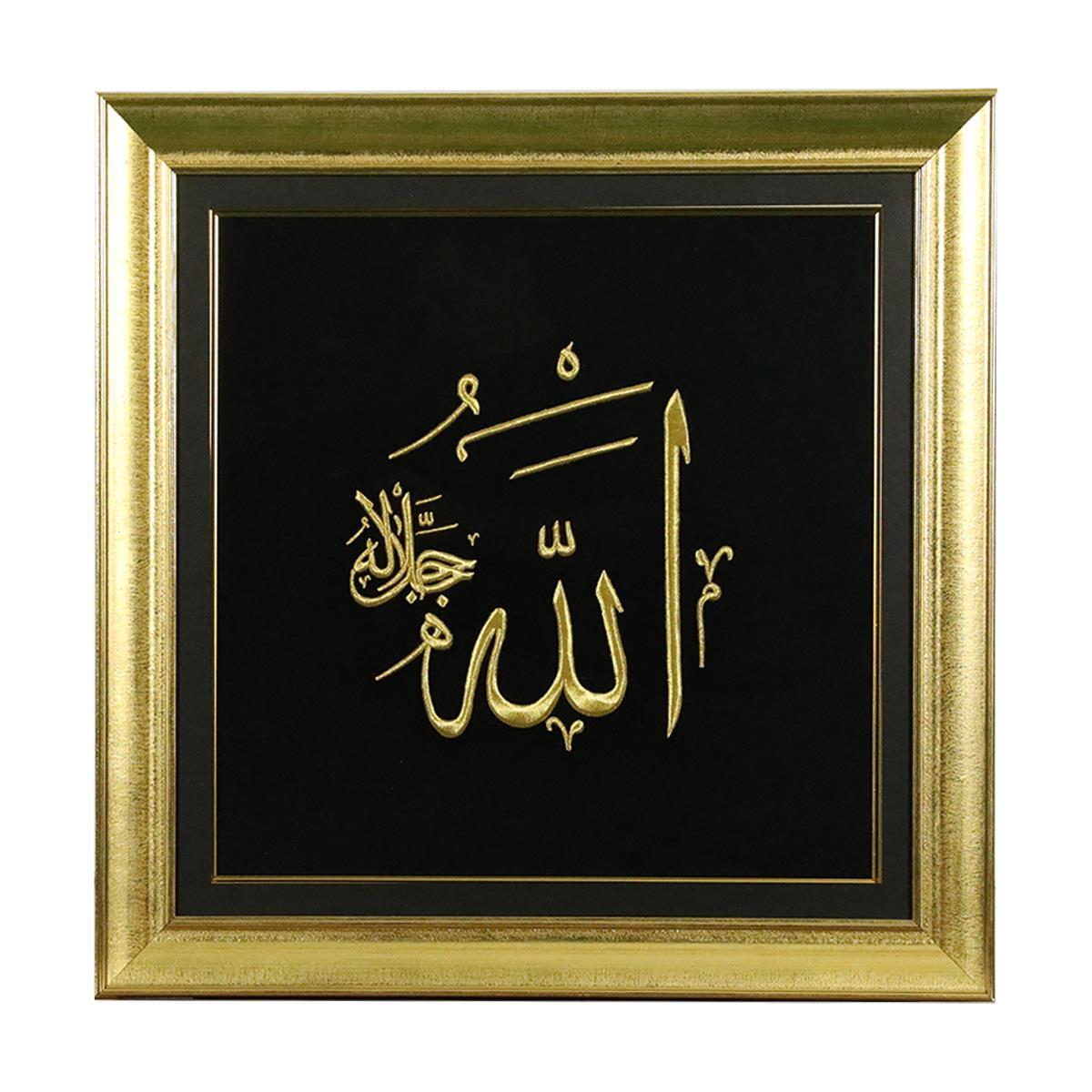 • Maraş işi (sim sırma) tekniği kullanılarak,siyah kadife kumaş üzerine altın sarısı simler ile ALLAH LAFZI işlenmiştir.
