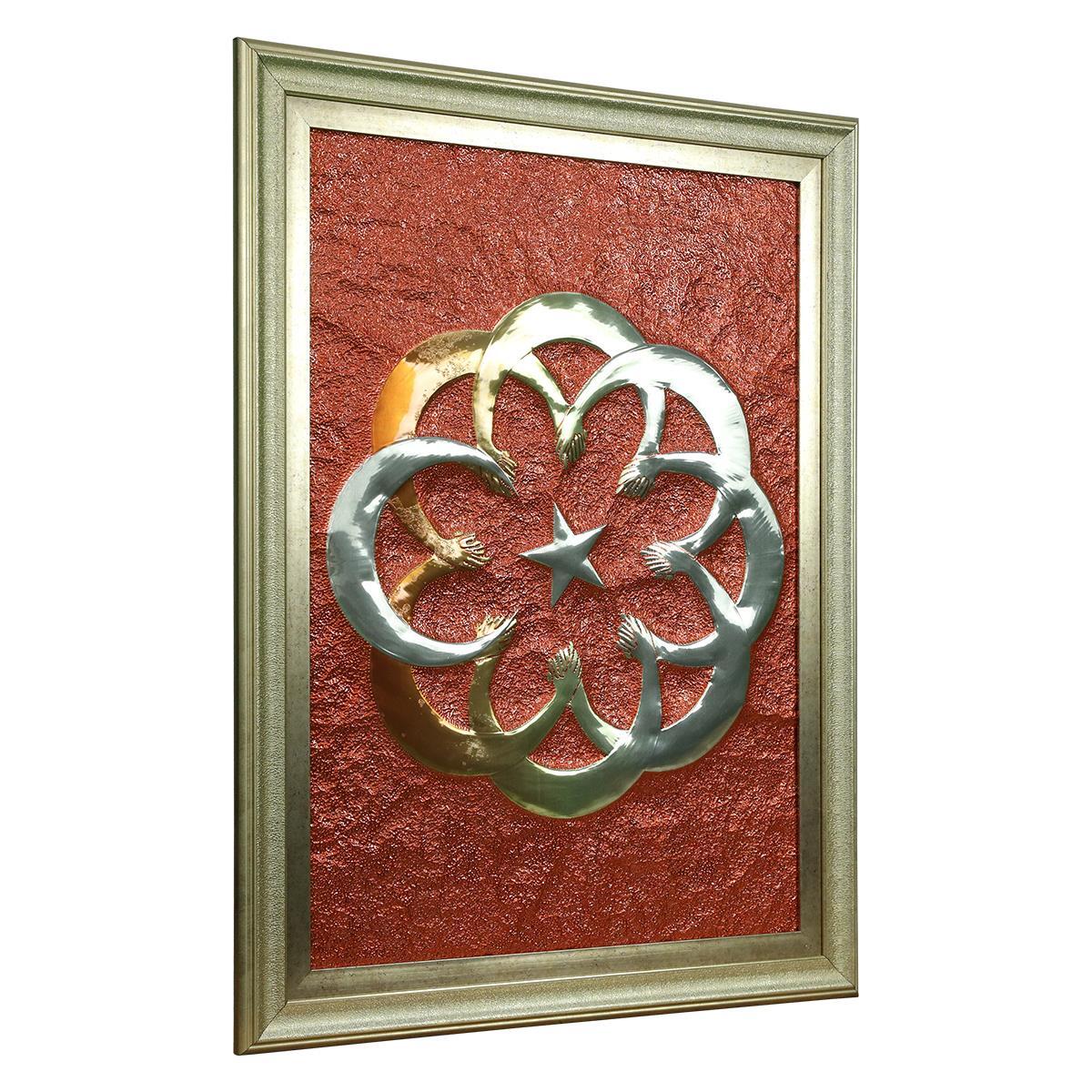 e38 EL İŞÇİLİĞİ AY YILDIZ ALÜMİNYUM KABARTMA TABLO 62x82 CM - 6359