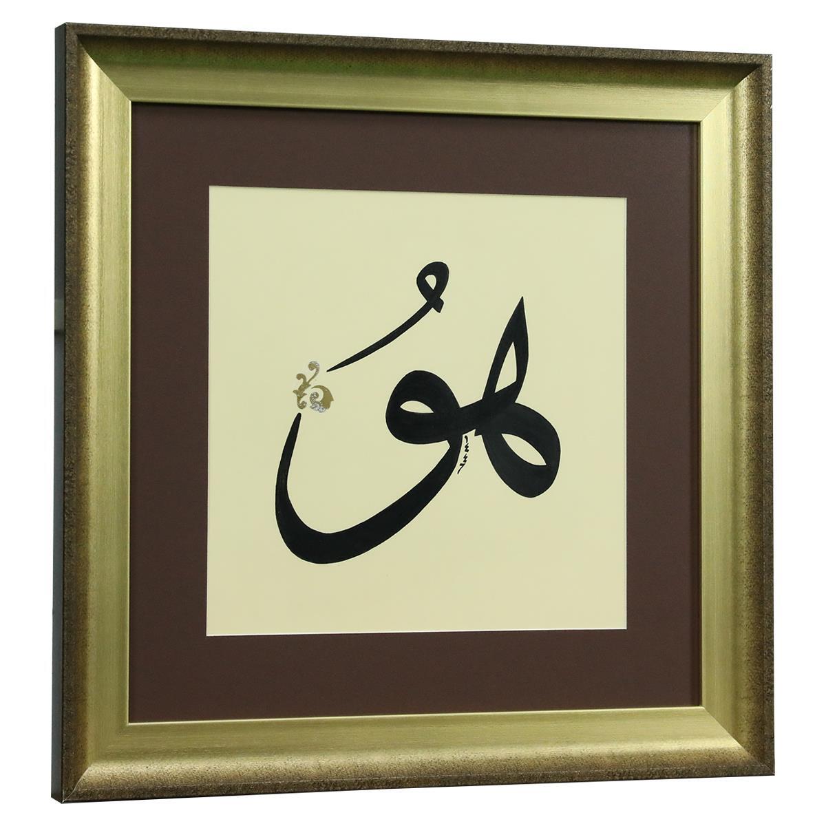 • Aharlı kâğıt üzerine hat kalemi ile Sülüs hu yazılmıştır.