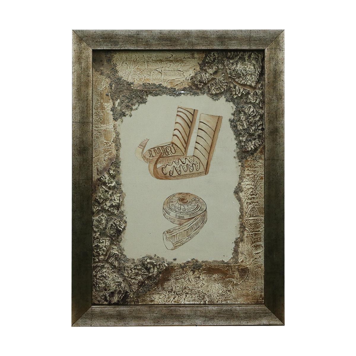 • Kumaş üzerine kumaş boyama yapılarak, kenarlarına karton kağıt ve strafor ile şekil verilerek, pasta rölyef tekniği kullanılarak ve üzeri boyanarak Asur Koloniler Çağı kalıntısı olan ''çarık ve salyangoz biçimli riton '' çalışılmıştır.