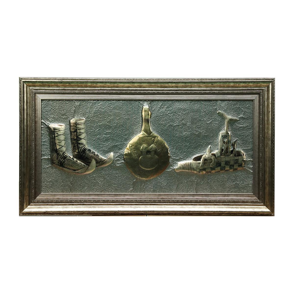 • Aliminyum üzerine baskı yapılarak, indirme ve kabartmalarla boyut verilerek çalışılmıştır. Kurs vücutlu mermer idoller bir veya birden fazla üçgenimsi başları ve uzun boylarıyla Tanrı, Tanrıça ve ailesini temsil eder. Çarık ve Gemi figürleride dini törenlerde kullanılan kutsal içecek kaplarını temsil eder.