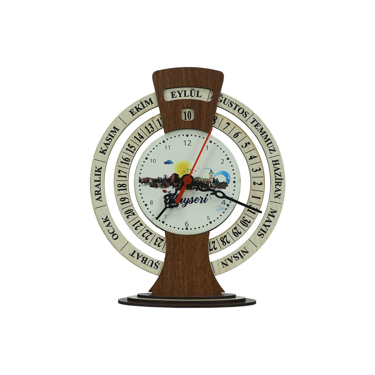 • El işçiliği yapılmış Kayseri Temalı Takvimli ahşap saat.