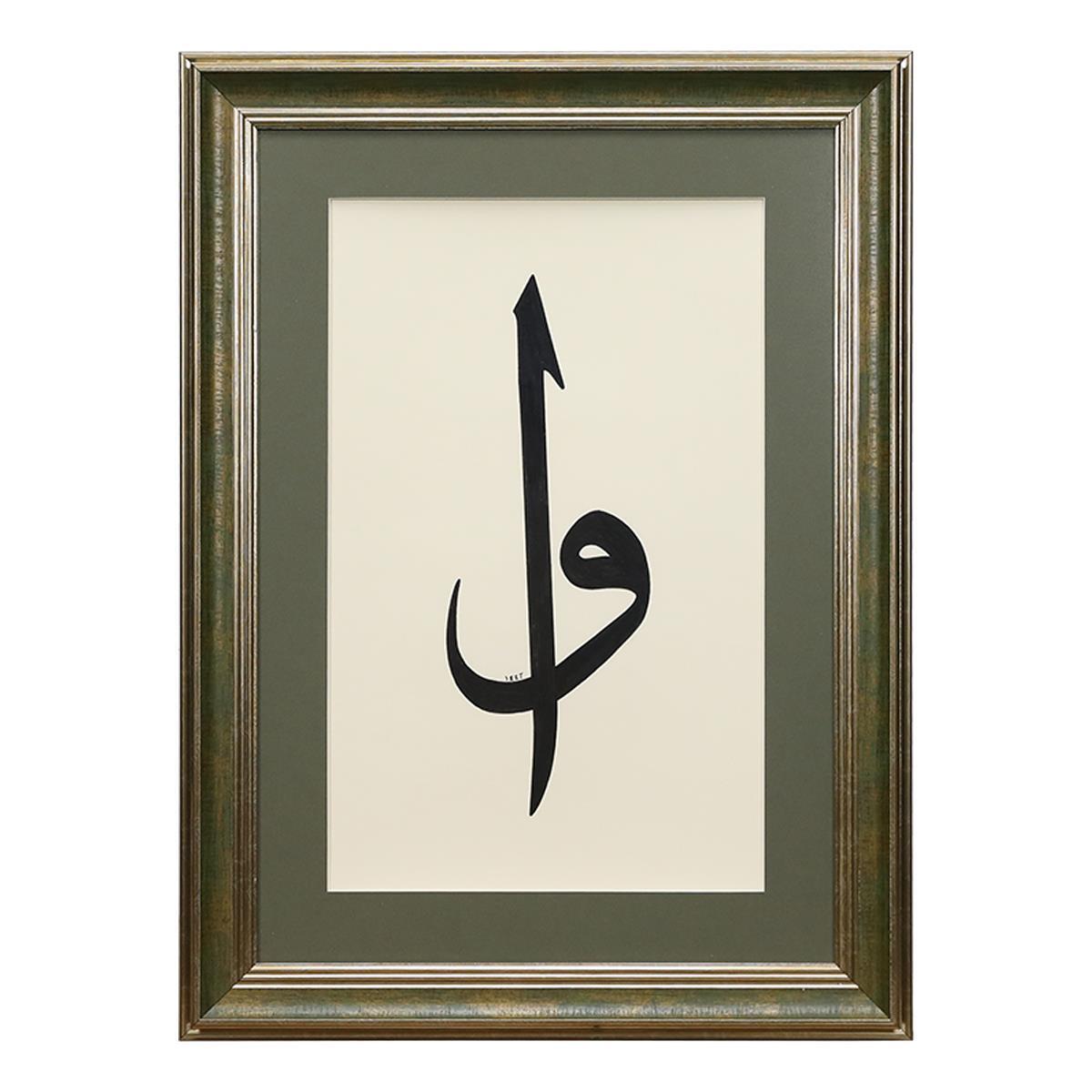 • Aharlı kâğıt üzerine hat kalemi ile Sülüs Elif & Vav yazılmıştır.