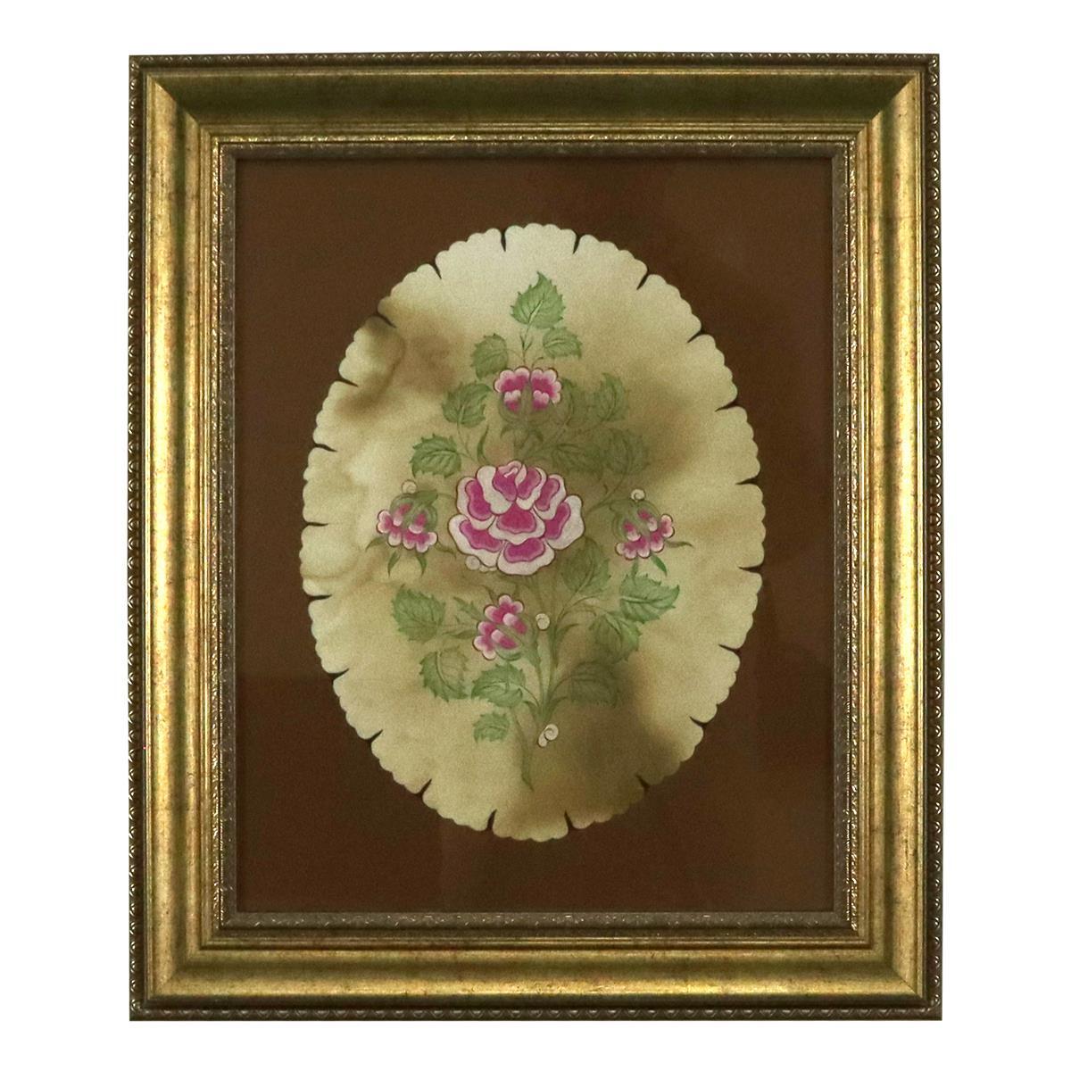 • تم عمل باقة دائرية باستخدام الغواش على خلفية حصيرة.