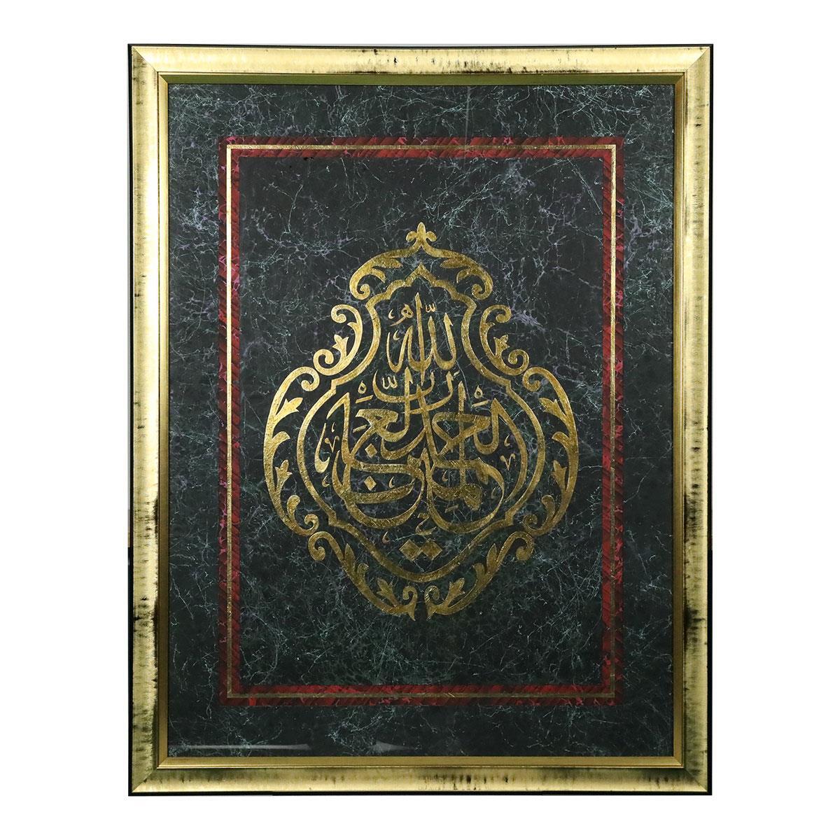 • ALHAMDULILLAH was worked using marble art and marbling art. Handmade paper was used. Gold leaf was used over the text