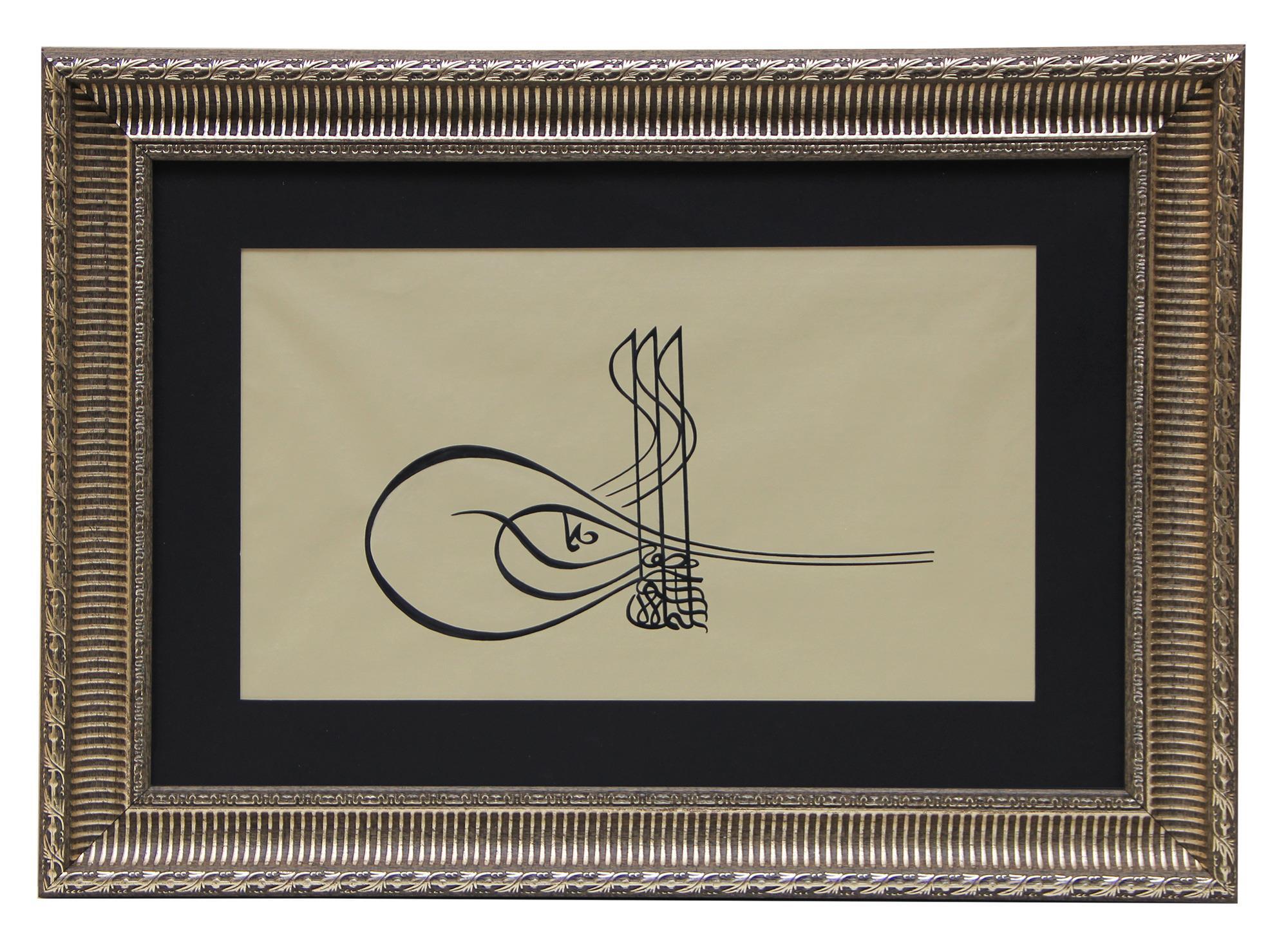 لوحة نص طغراء بالخط مقاس 46 × 64 سم «طغراء سليمان القانوني»