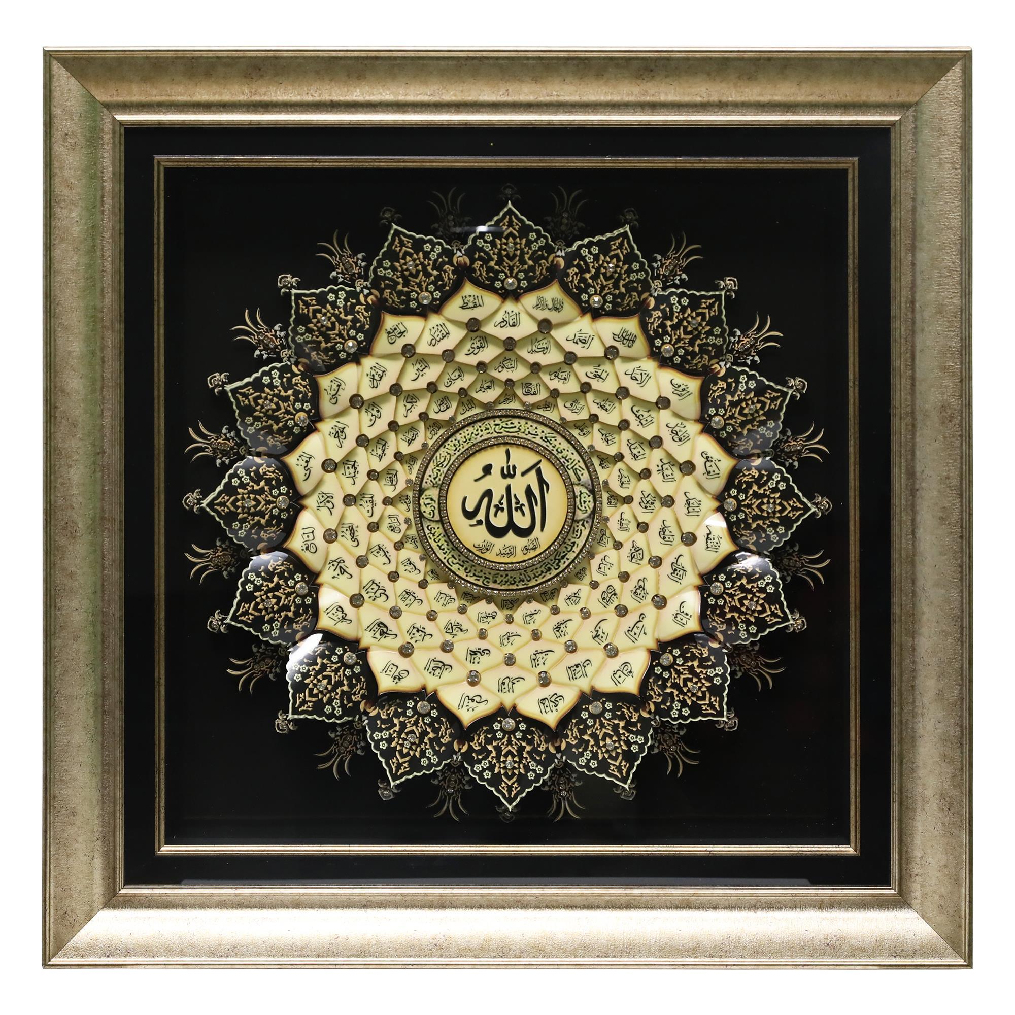 ESMAÜL HÜSNA (PAPER RELIEF PAINTING) Product Features Number of Pieces: Single Brand: e38 Dimensions: 62*62 cm Details • Esma-ül Hüsna Art was cut from layer by layer of coated paper and sized. • It is 100% domestic product. • It maintains its color, light and texture quality for many years. • First class materials and workmanship are used. • The product is from its special frame. • It is 100% hand workmanship. • It is a special product just for you. There is no other version of this product.