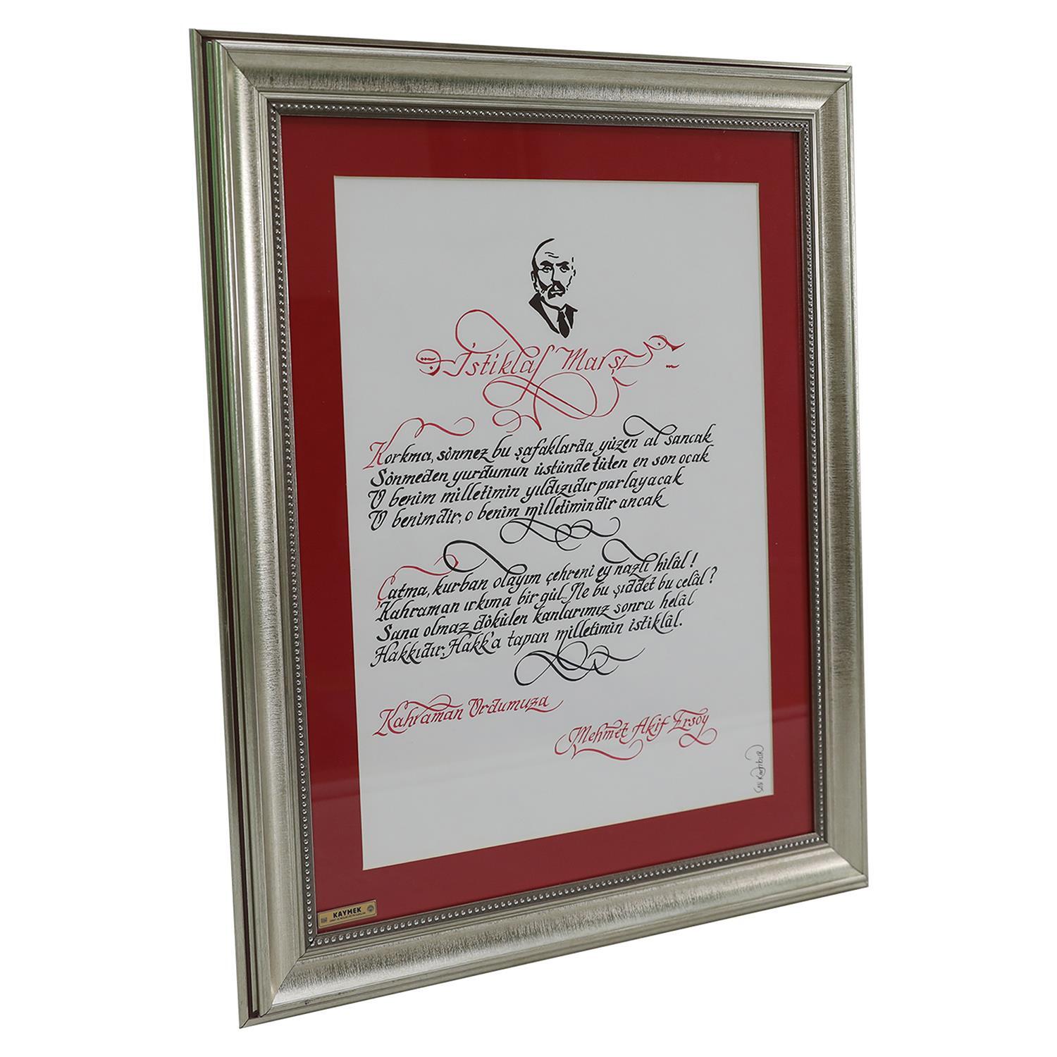 • Mat kuşe kâğıt üzerine kaligrafi tekniği kullanılarak Mehmet Akif Ersoy Figürü ve İstiklal Marşı şiiri çalışılmıştır.