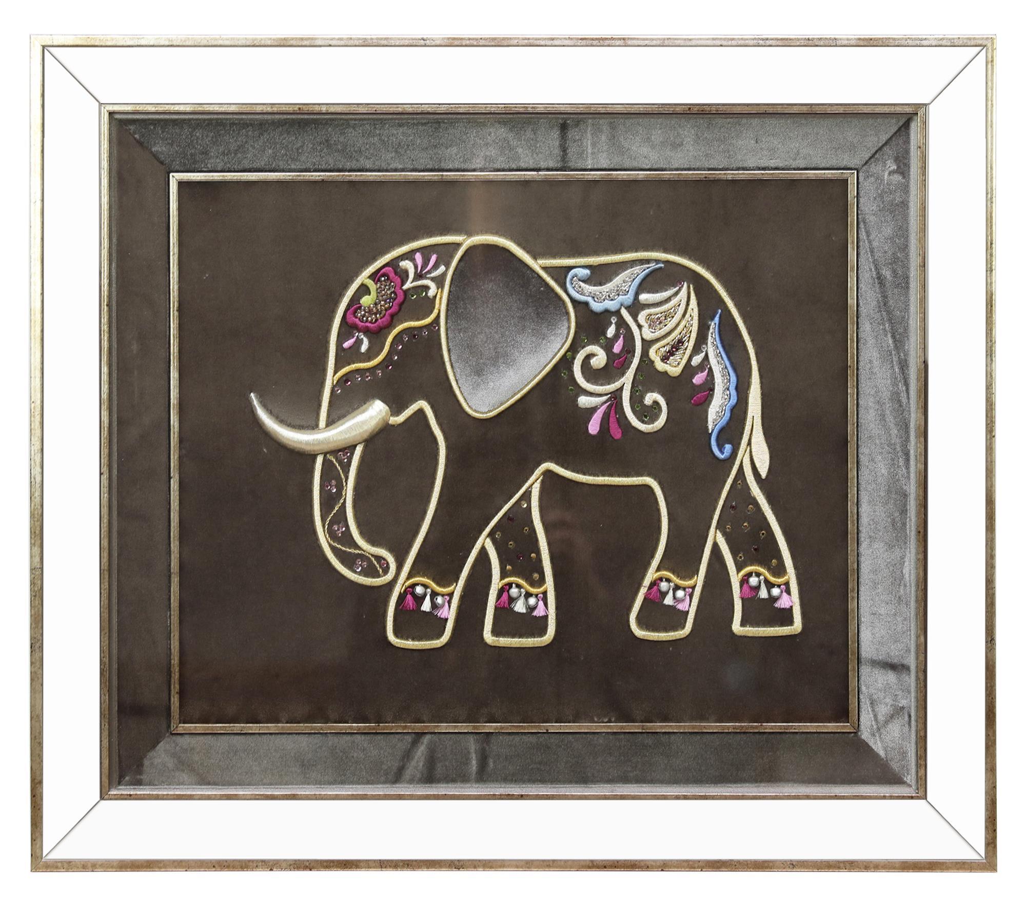 • تم تطريز نقش الفيل على قماش مخملي باستخدام تقنية Maraş على الماكينة.