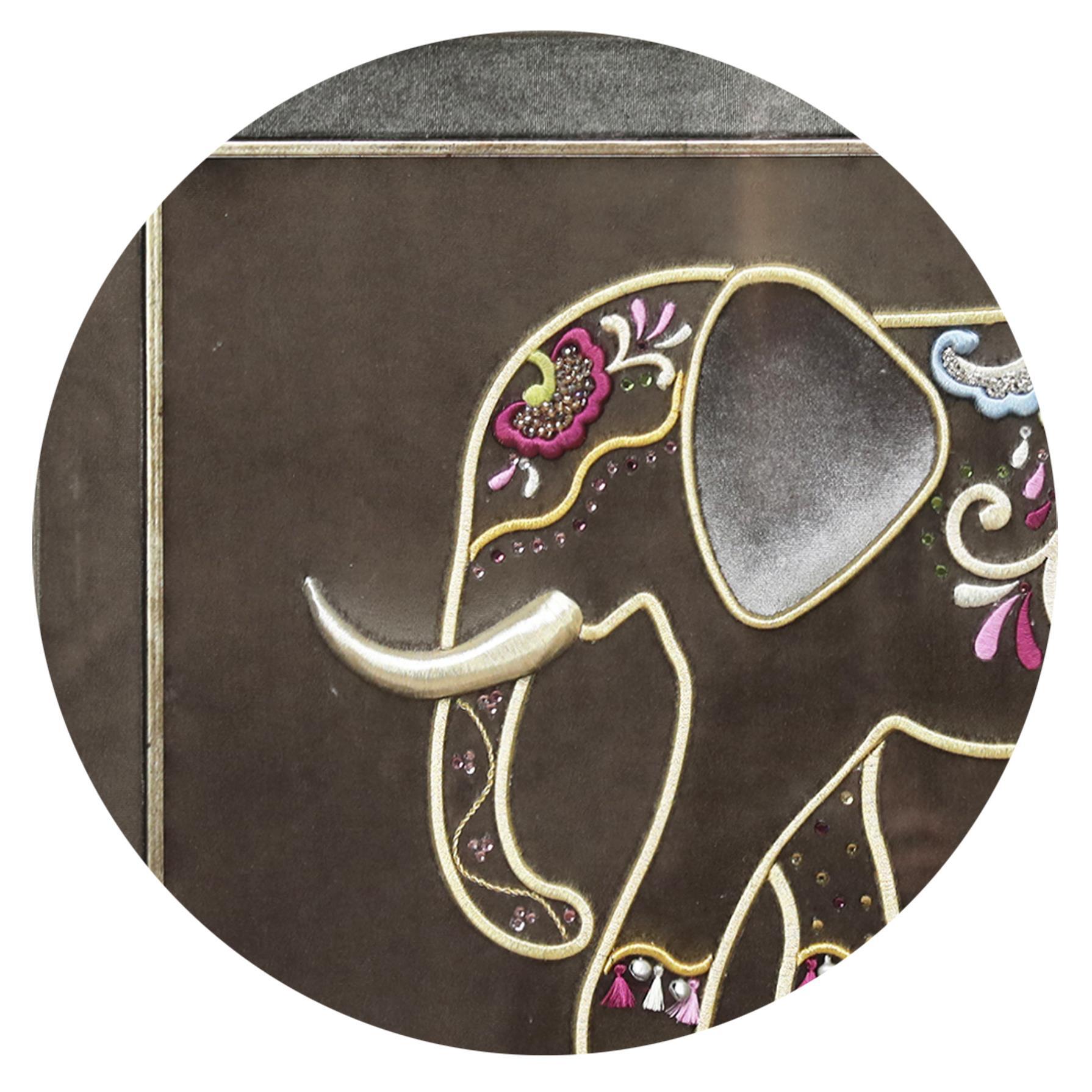 • Kadife kumaş üzerine makinede Maraş işi tekniği kullanılarak fil deseni işlenmiştir.