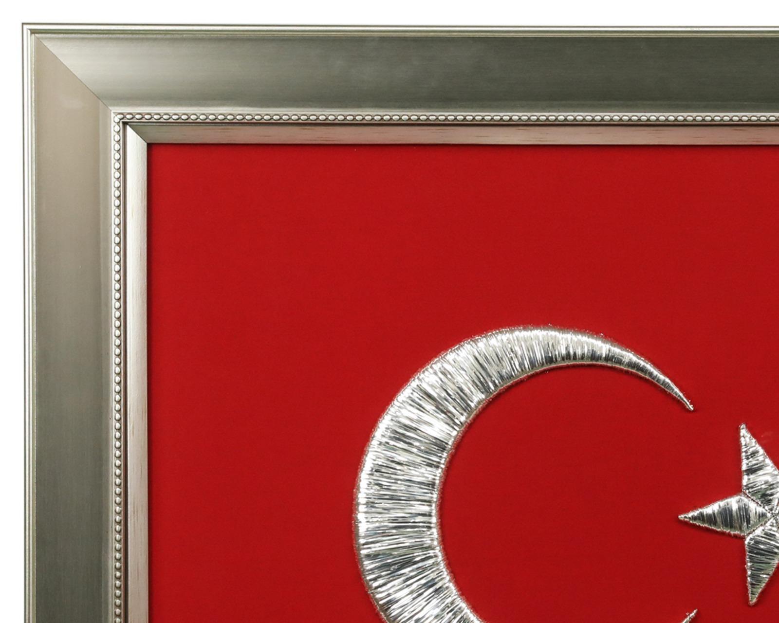 • Kırmızı kumaş üzerine Tel Sarma tekniği kullanılarak Türk Bayrağı işlenmiştir.